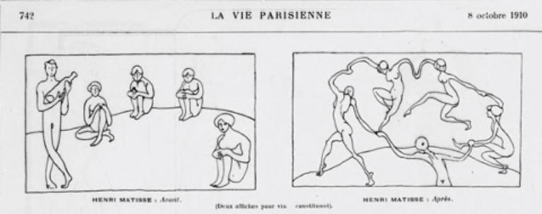 A novembre, Sergej visita il Salon d’Automne a Parigi in cui sono esposte la Danse e la Musique di Matisse. Si addensano critiche e attacchi al pittore, e tra queste, le parodie comparse sulla rivista “Vie parisienne”, in cui i personaggi di Matisse figurano prima come stanchi e depressi, poi come beoni che se la spassano.