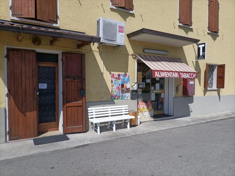 A quel punto mi sbilancio per sapere se posso fare una foto al negozio, allora lui, Bonini, dopo che l’ho scattata, si assenta un momento per tornare con la foto incorniciata di due sposi seduti sulla panchina che c’è all’esterno. Dice che anni fa, passando di lì, si erano fermati a prendere qualcosa da mangiare e il fotografo che era con loro aveva fatto alcuni scatti poi finiti in una mostra in città.