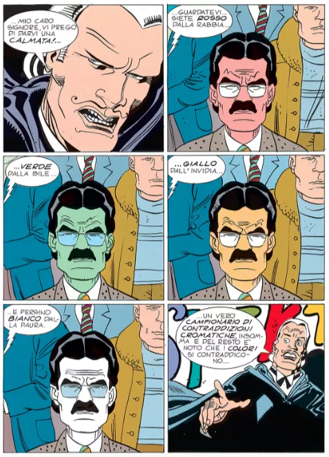 La settimana scorsa, chiacchierando di scuola e di colori con un amico, ho saputo che il n. 100 di Martin Mistère è dedicato al colore: il titolo è Di tutti i colori. L'amico è Andrea Sani che insegna storia e filosofia al Liceo "Galilei" di Firenze e si occupa di logica – sì, proprio di logica, quella più astratta possibile – e al contempo di cinema e di fumetti. La connessione non è poi così strana come sembra, ma certo mi ha sorpreso trovare un intero fumetto dedicato al colore, anzi alla teoria dei colori. La ricerca non è stata difficile, non occorre cercare nelle bancarelle, esistono gli e-book anche di fumetti.