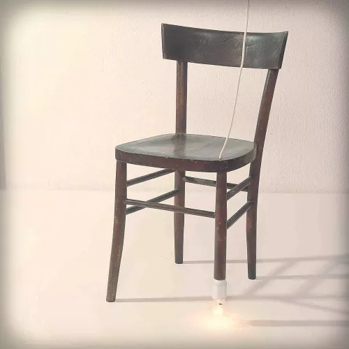 Assan gira lo sguardo, e si accorge che quella luce, lì nella notte, viene da sotto il tavolo. E che una delle sedie, lì, in quella cucina, ha una lampadina come piede, che a sedersi si sarebbe spenta. E un filo lungo che dal piede se ne va a cercare il soffitto, al centro, lassù in alto. Come una cima cerca il suo molo.