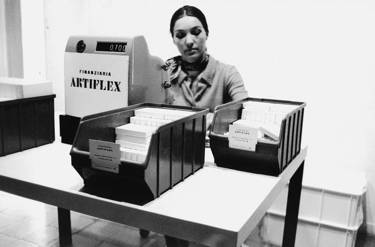 Gianfranco Baruchello, Artiflex (Finanziaria Artiflex), 1968. Documentazione fotografica. Courtesy Fondazione Baruchello, Roma.