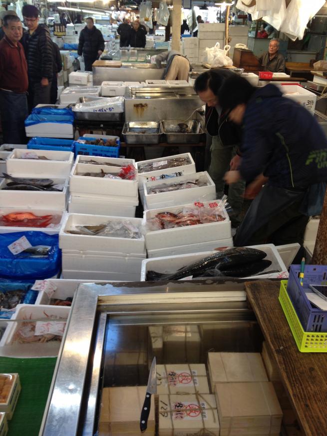 Tokyo è una città di mare, ma non sembra. Stando nel centro della città non lo si percepisce mai. Il vento non porta odor di salmastro. Il porto è talmente grande e affollato di capannoni ed edifici commerciali che a mala pena si vede, in lontananza, il mare. Però i pesci sono ovunque.