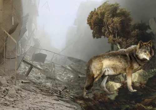Anche il Fit Festival di Lugano ha scelto una bestia selvatica come immagine simbolo per l’ultima edizione, dedicata al tema della rappresentazione del potere: un lupo solitario che si aggira tra le macerie (l’autrice è Rubidori Manshaft).
