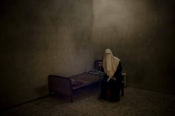 Siamo a Saana, durante le rivolte dell’anno scorso, e una donna accoglie nella moschea il ragazzo: “Venite a me voi tutti che siete affannati e stanchi”, recita un passo del Vangelo. La fotografia interpreta in modo perfetto questa immagine che riecheggia nel nostro ricordo per averla vista in decine e decine di tele, o per esserci soffermati davanti alla Pietà michelangiolesca. Il punctum della foto sono ovviamente i guanti bianchi che richiamano al tempo stesso i guanti di un cameriere e quelli di gomma di un’infermiera. Così si colloca la donna che si nasconde sotto quella palandra nera che la ricopre dai piedi al capo lasciando solo aperte le feritoie degli occhi.
