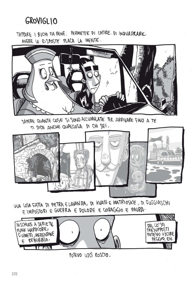 A fare da intercapedine tra il racconto e la realtà sono fattezze a volte morbide o buffe, a volte ricercate o schizzate in velocità, secondo il modello degli abitanti di Paperopoli o quello, del tutto diverso, di una fanzine autoprodotta. In Dimentica il mio nome quello che funziona è proprio l’attrito tra questi estremi, tra Disney e il punk, proprio perché mai come stavolta hanno qualcosa da dirsi. È da qui che sprizzano scintille e si innestano cortocircuiti – e ci si ritrova a far uscire lacrime dove invece ci sarebbe da ridere, e viceversa.