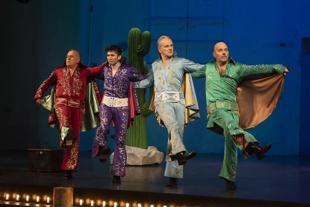 Latella e Bellini firmano insieme questo lavoro, che costituisce un dittico con Wonder Woman, storia di uno stupro, di una sentenza di assoluzione degli stupratori e di ribellione delle donne (quattro donne sono le interpreti, come in Zorro sono quattro uomini). Il regista disegna nuovi territori per la regia attraverso la scrittura, continuando nella ricerca autoriale sui supereroi, vendicatori di una realtà spesso avvilente, proiezioni fantastiche di un’idea di giustizia inattingibile. Col drammaturgo, in compenetrazione di ruoli, fornisce agli attori – splendidi, efficacissimi, coinvolti nella creazione – materiali che possono essere variati, in un gioco teatrale che quando trasmette idee forti, contenuti, subito li vivifica con un gioco che guarda anche al musical, un musical molto più serio e anche divertente della pluricandidata all’Oscar Emilia Perez. Là siamo nel melò più puro, nella giustapposizione di generi cinematografici diversi; qui la tensione etica è più trasparente: la musica e i mascheramenti aiutano a scavare ancora più a fondo nel caos del reale.